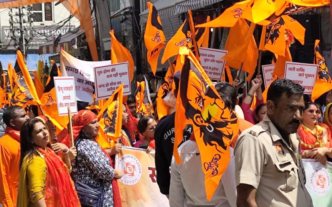 Gurugram News : मीट की अवैध दुकानों के खिलाफ सड़कों पर उतरे हिंदू संगठन, आंदोलन की चेतावनी