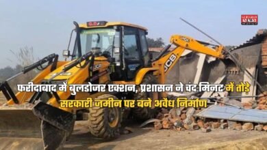 Faridabad News: फरीदाबाद में बुलडोजर एक्शन, प्रशासन ने चंद मिनट में तोड़े सरकारी जमीन पर बने अवैध निर्माण