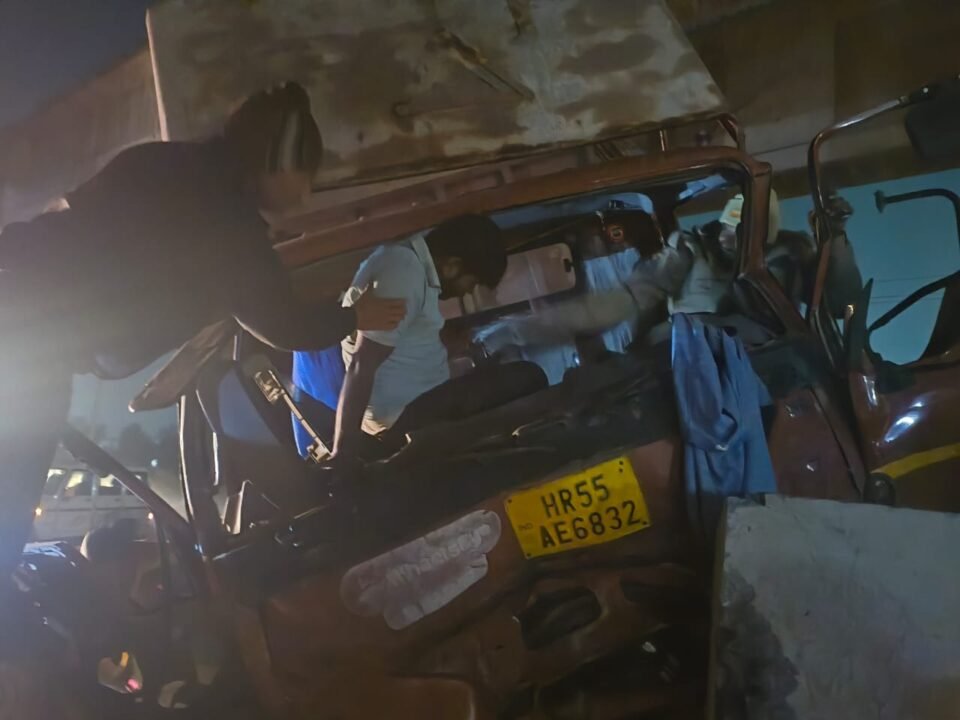 Accident On Highway : खड़े ट्रक से टकराया कैंटर, ड्राइवर-कंडक्टर केबिन में फंसे , 20 मिनट में रेस्क्यू कर बाहर निकाला