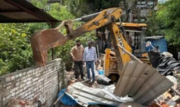 Action on illegal encroachment: शक्ति पार्क में चला नगर निगम का पीला पंजा, 6 अवैध गोदाम ध्वस्त
