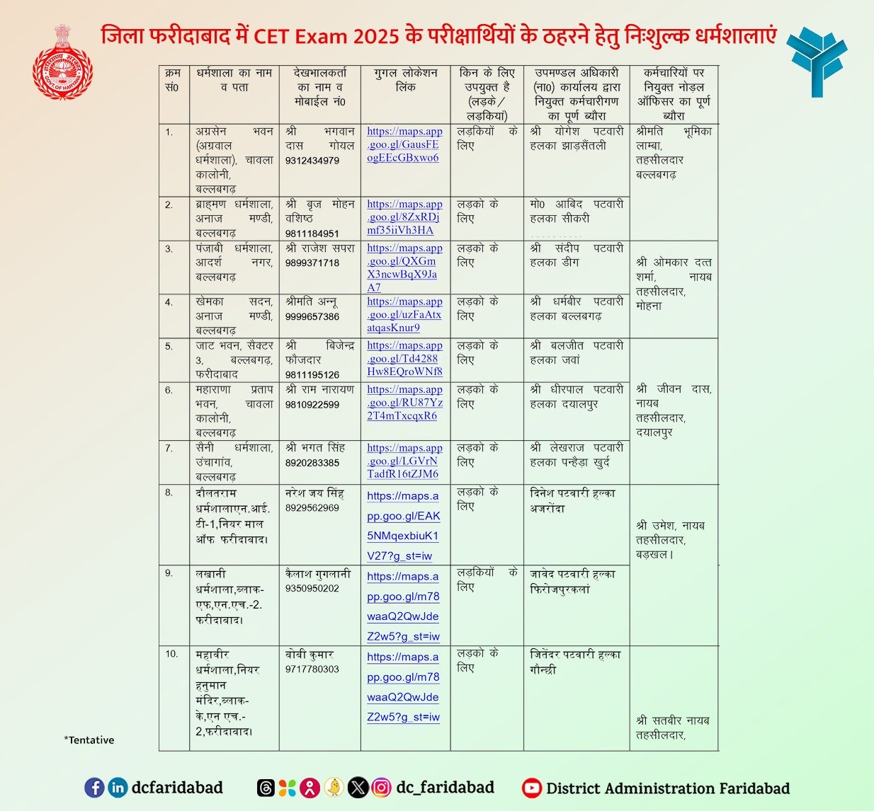 Haryana CET 2025: फरीदाबाद में CET एग्जाम को लेकर परीक्षार्थियों के ठहरने हेतू नि:शुल्क स्थान निर्धारित