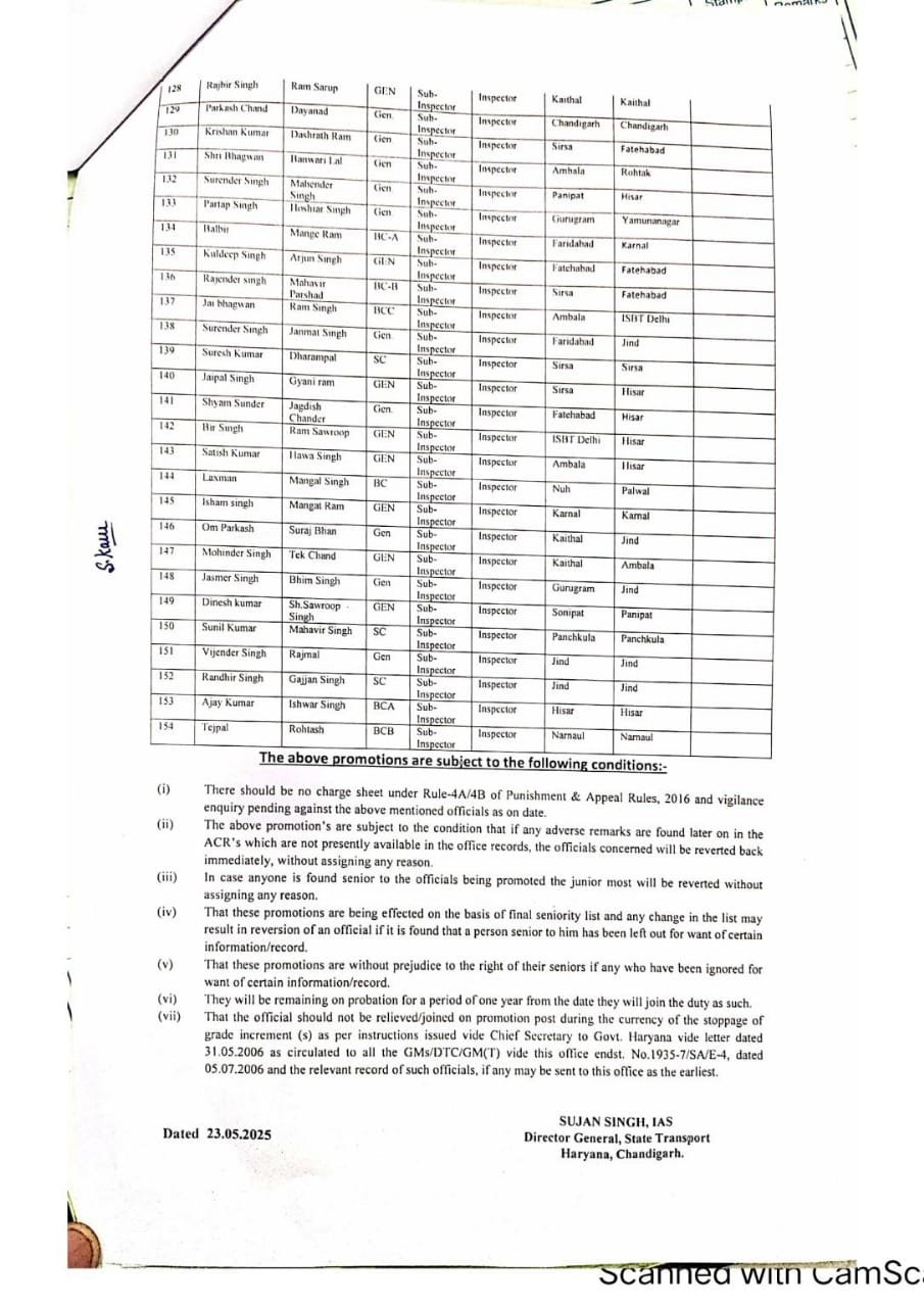 Haryana: हरियाणा से बड़ी खबर सामने आ रही है। हरियाणा में इन 154 सब इंस्पेक्टरों को प्रमोशन का तोहफा मिला है और इन्हे अब इंस्पेक्टर पद की जिम्मेदारी दी गई है। आइए देखते है इनकी पूरी लिस्ट…