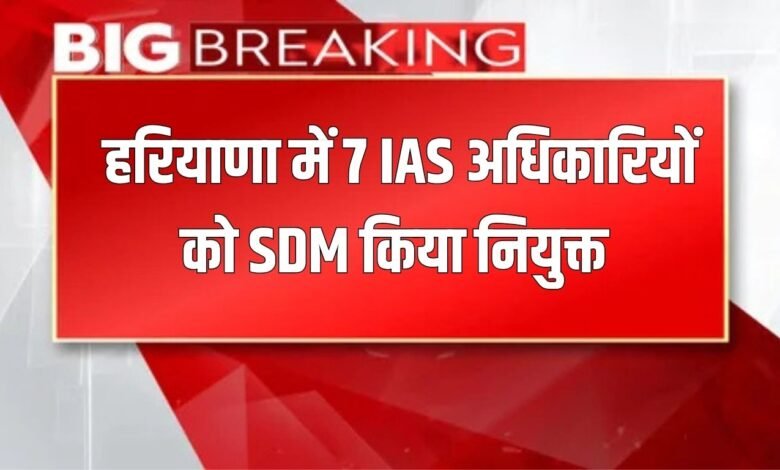 Haryana IAS Officer: हरियाणा में 2023 बैच के 7 IAS अफसरों को एसडीएम नियुक्त किया गया है।