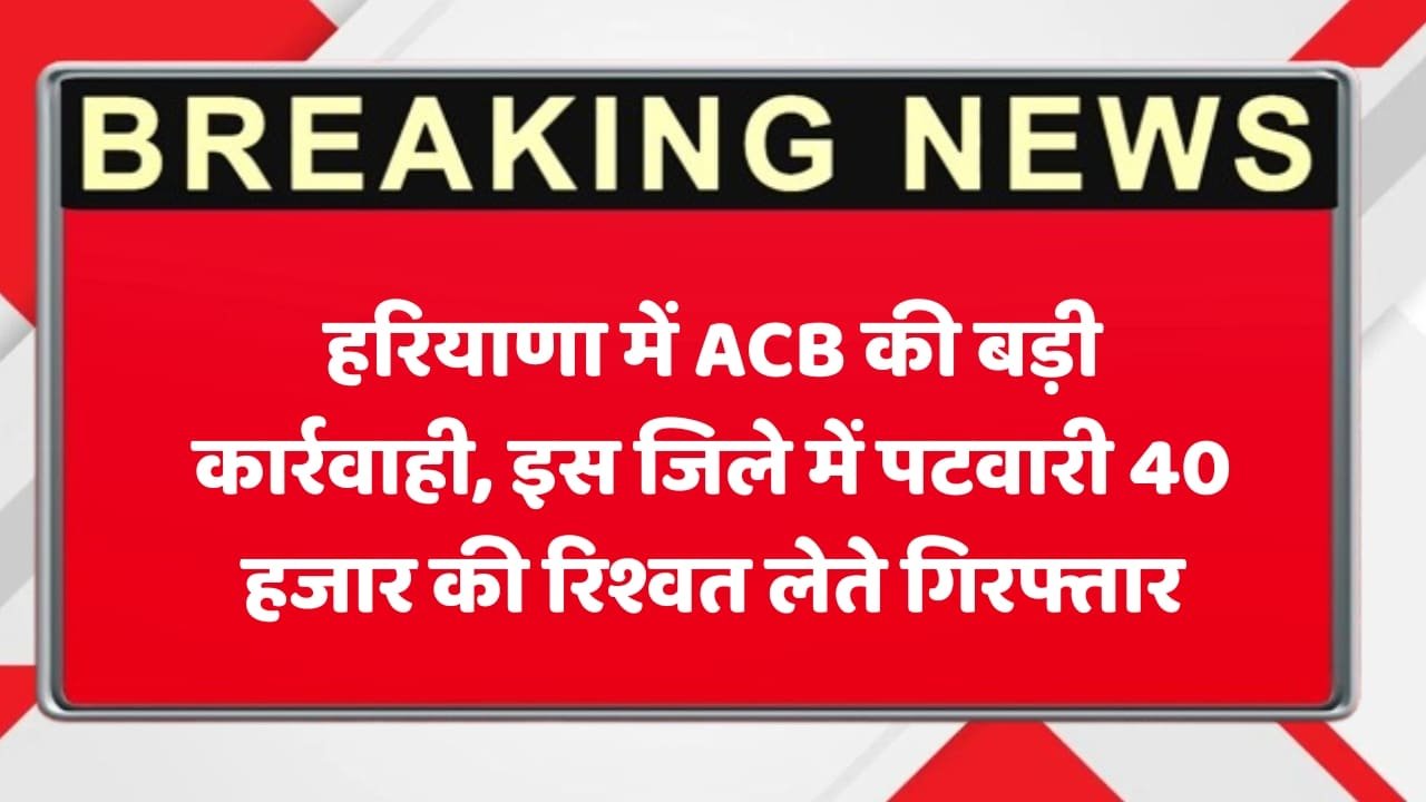 Haryana News : हरियाणा में ACB की बड़ी कार्रवाही , इस जिले में पटवारी 40 हजार की रिश्वत लेते गिरफ्तार