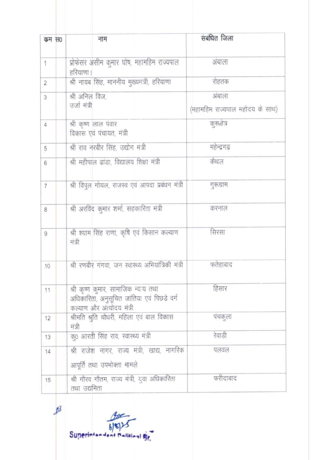 Haryana News: हरियाणा में 15 अगस्त पर ध्वजा रोहण करने वाले सभी मंत्रियों की लिस्ट जारी की गई है।