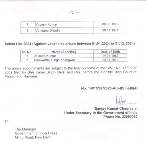 2002 बैच के अधिकारियों के प्रमोशन का मामला पंजाब एवं हरियाणा हाईकोर्ट में चल रहा है। इस बैच के अधिकारियों के प्रमोशन को लेकर राष्ट्रपति द्रौपदी मुर्मू तक शिकायत की गई है।