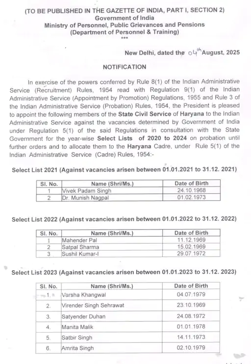 HCS Officer Promoted: हरियाणा के 27 HCS अधिकारियों में से 15 को IAS प्रमोट कर दिया गया है। केंद्र सरकार की तरफ से इसका नोटिफिकेशन जारी किया गया है। जबकि 25 में से 12 अधिकारियों के प्रमोशन को होल्ड कर दिया गया है। इन अधिकारियों में 2002 और 2004 के अधिकारी शामिल हैं।