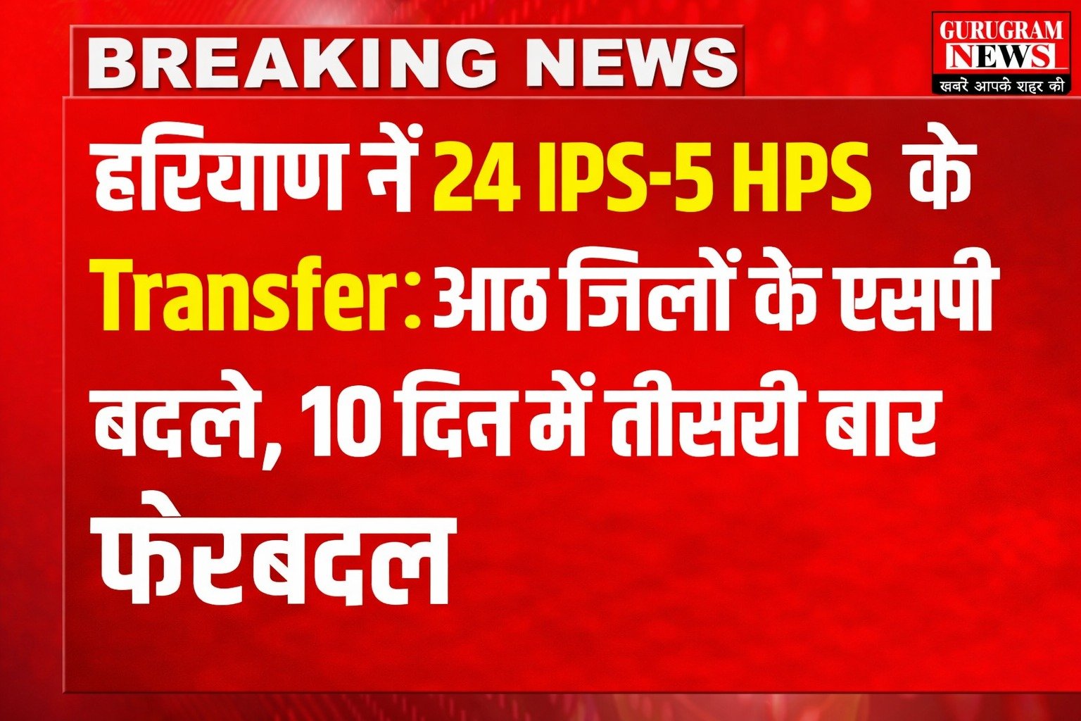 Haryana Police : हरियाणा सरकार ने प्रदेश की कानून व्यवस्था को दुरुस्त करने के लिए प्रशासनिक स्तर पर बड़ा फेरबदल किया । गुरुवार को गृह विभाग ने 29 पुलिस अधिकारियों के तबादले और तैनाती के आदेश जारी किए, जिसमें 24 IPS और 5 HPS अधिकारी शामिल हैं । इस फेरबदल का सबसे ज्यादा असर गुरुग्राम, हिसार, रोहतक और नूह जैसे संवेदनशील जिलों में देखने को मिला है ।