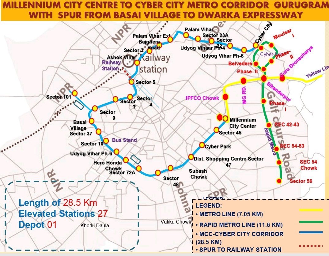 गुरुग्राम के मिलेनिमय सिटी सेंटर मेट्रो स्टेशन से सेक्टर 9 तक बनने वाले मेट्रो रुट के पहले चरण के लिए जिस कंपनी को ठेका दिया गया है उस कंपनी ने ही गुजरात के सूरत में मेट्रो का काम किया है इसीलिए कंपनी ने सूरत से पाइलिंग मशीन को गुरुग्राम मंगा लिया है जिसको यहां पहुंचने में सात दिन लगे ।