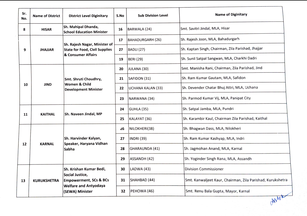 दिग्गजों की तैनाती और नई जिले की सुगबुगाहट सूची में सबसे चौंकाने वाला और महत्वपूर्ण नाम पूर्व मुख्यमंत्री मनोहर लाल खट्टर का है, जो हांसी में ध्वजारोहण करेंगे। हांसी को लंबे समय से जिला बनाने की मांग उठती रही है और सरकार द्वारा वहां पूर्व मुख्यमंत्री को भेजना इस क्षेत्र के बढ़ते राजनीतिक महत्व को दर्शाता है।