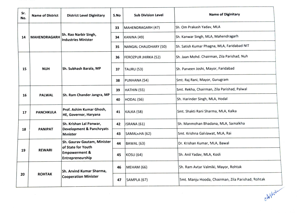 राव इंद्रजीत सिंह के नाम पर सस्पेंस इस पूरी लिस्ट में सबसे ज्यादा चर्चा केंद्रीय मंत्री राव इंद्रजीत सिंह के नाम की कमी को लेकर हो रही है। आधिकारिक सूची में उनका नाम शामिल नहीं होना राजनीतिक गलियारों में चर्चा का विषय बना हुआ है, हालांकि सरकार की ओर से इस पर कोई स्पष्टीकरण अभी तक नहीं आया है।