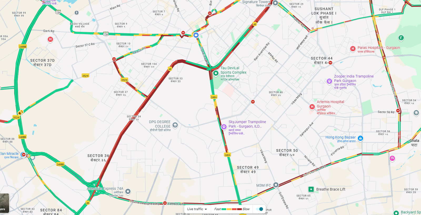 सोमवार शाम करीब साढे पांच बजे दिल्ली गुरुग्राम एक्सप्रेसवे, बादशाहपुर, सेक्टर 70, SPR Road पर जमकर बारिश हुई जिसके कारण इन इलाकों में पानी भर गया । Delhi Gurugram Expressway पर नरसिंहपुर के पास एक बार फिर से सर्विस लेन और मुख्य सड़क पानी से लबालब नजर आई ।